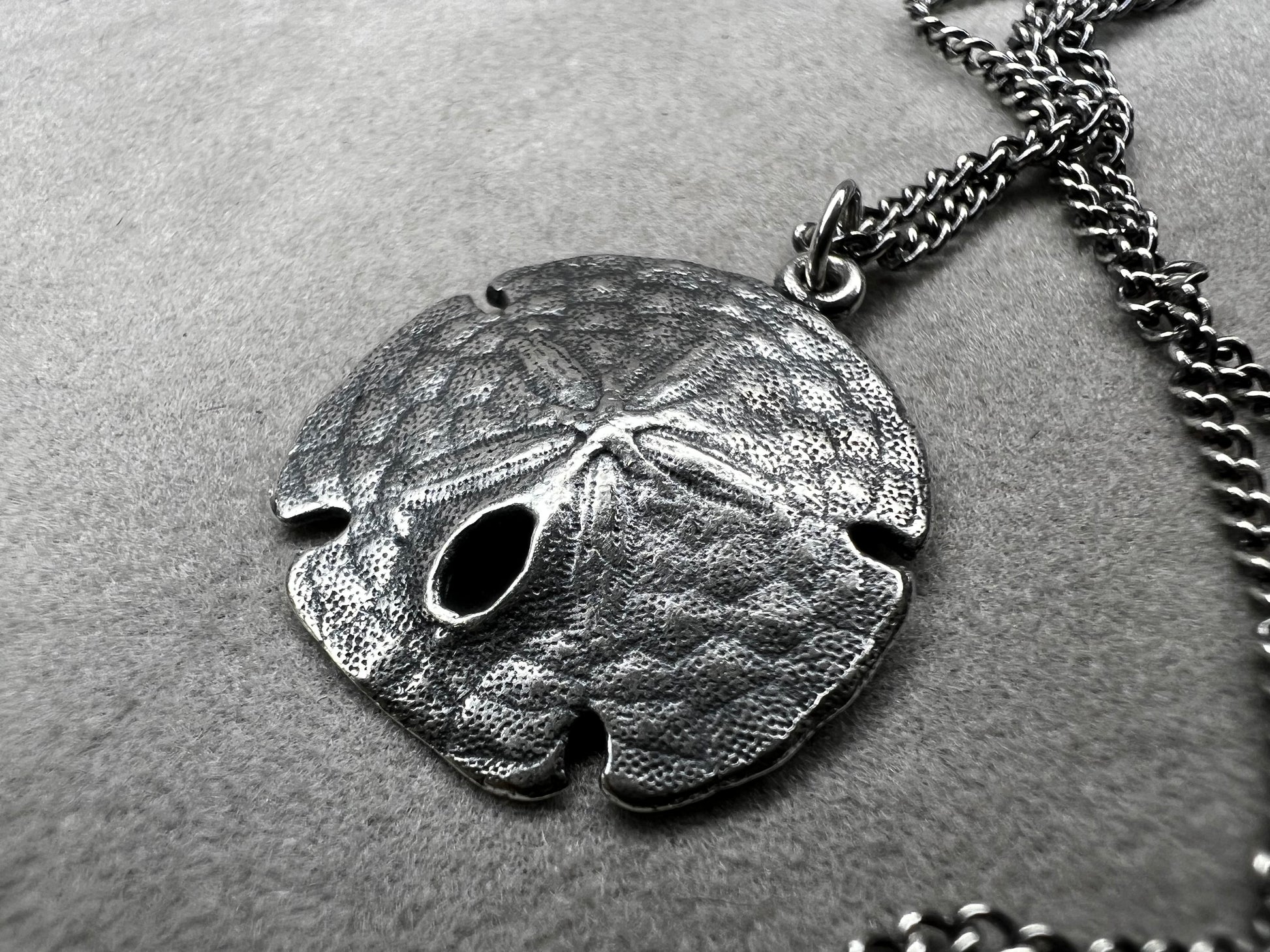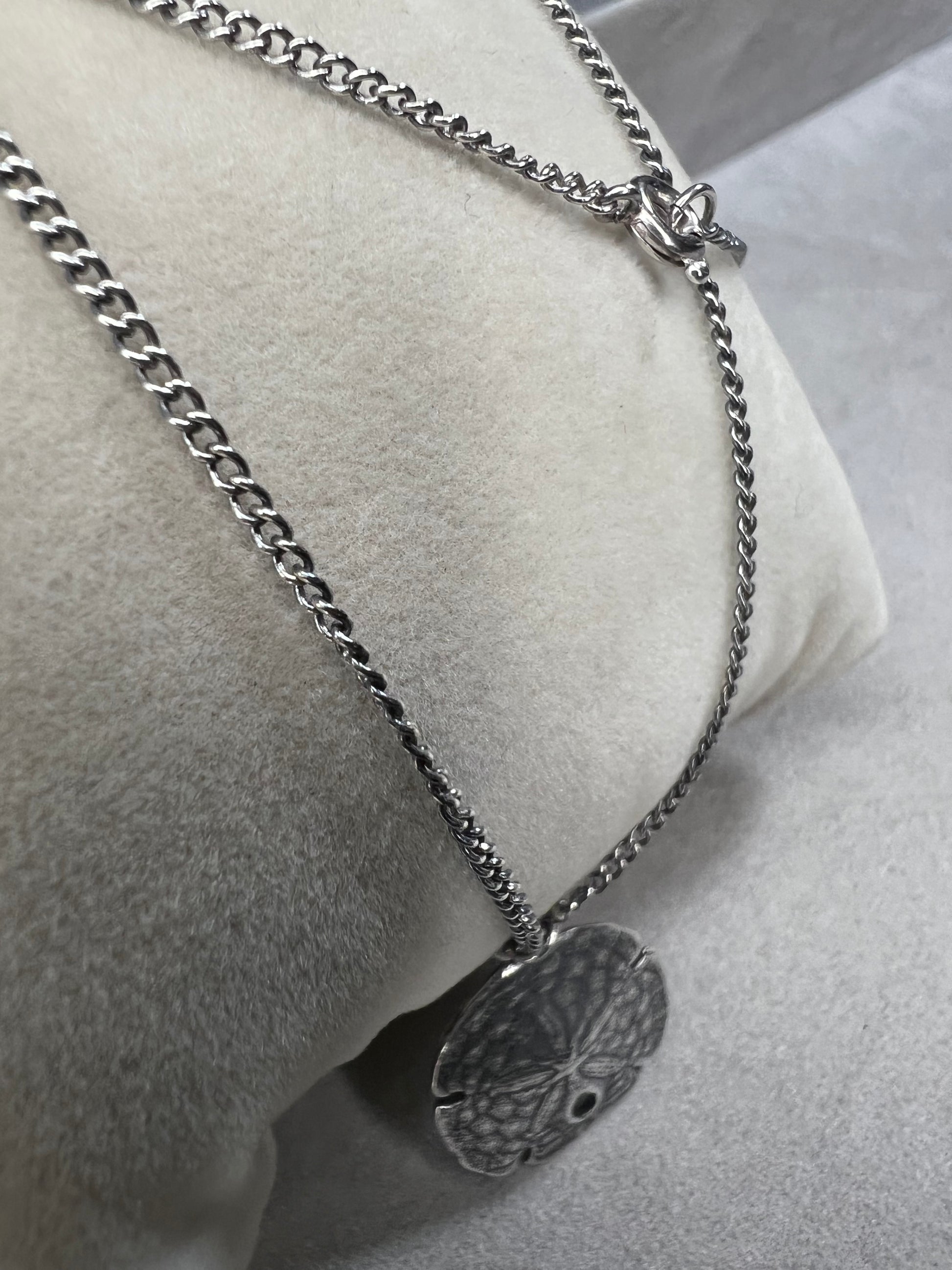 This sterling silver chain is paired with a 3/4" sand dollar pendant for the perfect beach look.